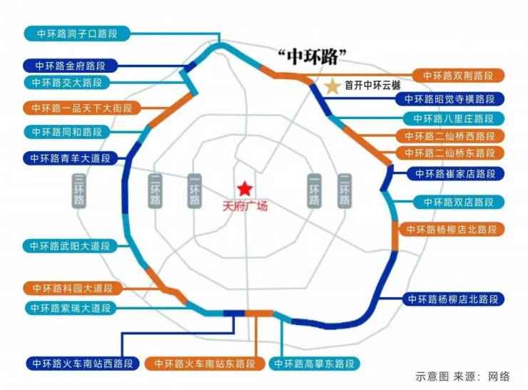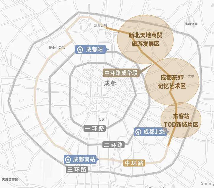 四纵:昭觉寺南路、城北出口高速路、蜀龙路、成华大道。