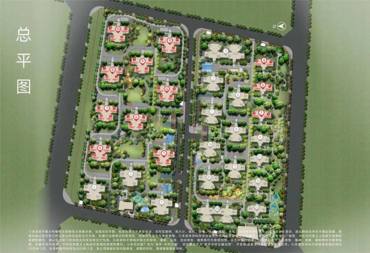楼栋采用阵列式布局,保证采光、通透及居住舒适度。北地块最大约73米楼间距,清风阳光穿梭林间,生活惬意不离鲜氧。