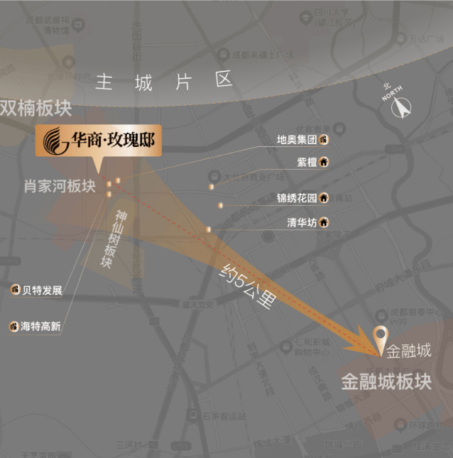 项目位于 “南富” 传统高端住区(神仙树、桐梓林旁),直线距离金融城仅 2 公里(车程 8 分钟),既享老城 “烟火气”(芳草街老巷子、玉林生活圈),又近享金融城 “国际范”(交子公园、SKP 商圈),是南二环少有的 “成熟与潜力” 双优地块。