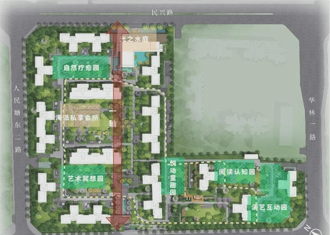 “一轴一环两会所+五大主题庭院”的园林规划,在这个总价级别的产品里,实属超配。