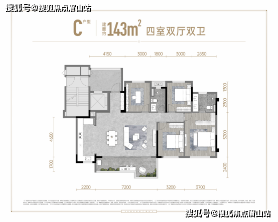 首批次户型:115㎡(1栋和13栋,套三双卫)、126㎡《3栋》、131㎡《2栋》、143㎡《14栋》(套四双卫)