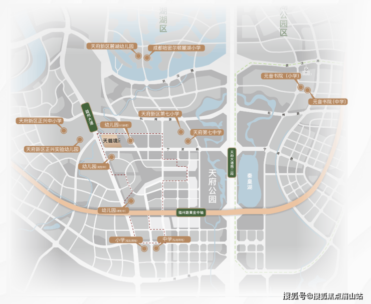 ⦿优享全龄教育 葆育孩子菁英未来约800米步行可达天府七中,天府七小,周边环伺天府八幼、哈密尔顿麓湖小学、元音书院、天府一小等名校,为孩子预定高起点人生。