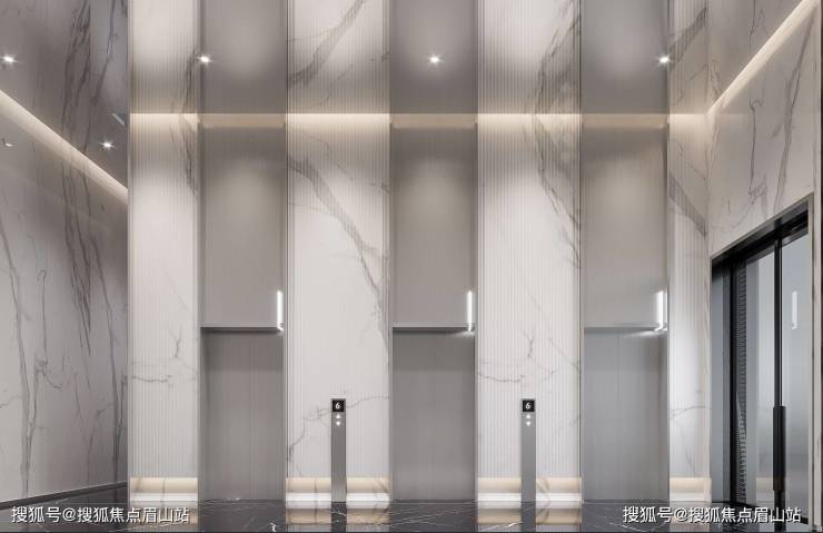 4⃣精奢入户大堂:约6米挑高大堂与极简的现代风装饰,明亮通透、视野敞阔
