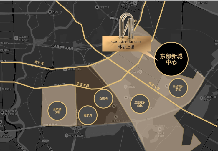 【黄金3.5环+高端改善居住区】金融城顶奢住区,均价7万+金融城东豪宅住区,均价4万+白鹭湾高奢墅区,均价3.5万+三圣乡高奢住区,均价3.5万+锦江大道3.5环线之上,串联金融城-潘家沟-白鹭湾-三圣乡-东部新城中心,新兴五大居住板块。集世界级政策导向、高端产业、公园生态、前沿规划和高端住宅基因于一体,撑起成都楼市的价值天花板,代表成都生活的至高水准。