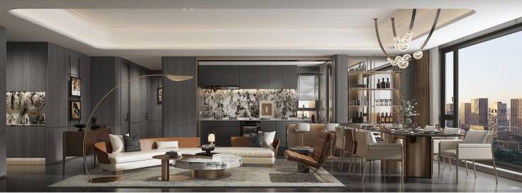 ◎ 同步国际审美 / 优雅精奢生活精选纹理丰富的材料,营造温馨的空间氛围,配合与整体风格协调的软装陈设与艺术作品,既体现室内环境的文化内涵,又增添艺术气息,从而打造现代简约、现代雅奢、意式轻奢的精装风格,营造场景感、生活感、向往感的居住空间。