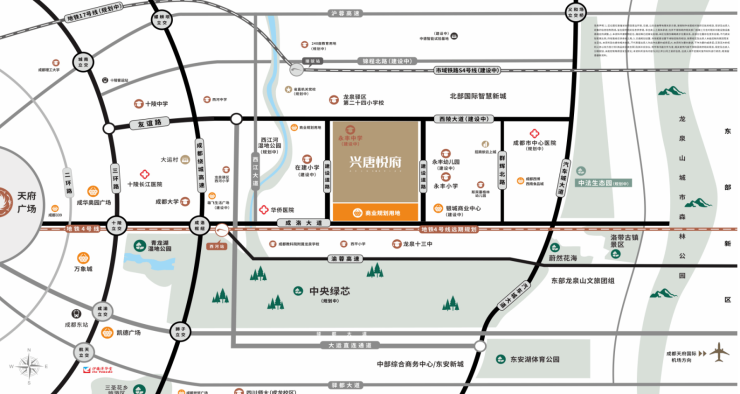 【交通】立体交通动脉 吸附城市发展动脉🚙三轴:东进主轴成洛大道、蜀都大道、西陵大道(建设中)🚗三环线:三环、四环(绕城高速)、东安大道(车城大道)🚇三地铁:地铁4号线(已建成西河站,东延线在项目旁规划有站点)、地铁17号线(规划中)接驳S4市域铁路(规划中)、地铁22号线(规划中)
