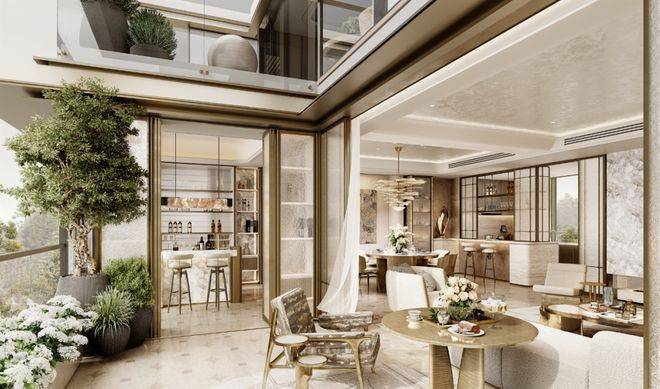 内外超链公园体系:由大师级团队执笔的景观设计,构建了“城市-社区-私宅”三重公园链接。通过改造市政公园形成专属“外归家系统”,内部打造多元主题花园中庭,实现城市绿肺与私家庭院的生态互联。