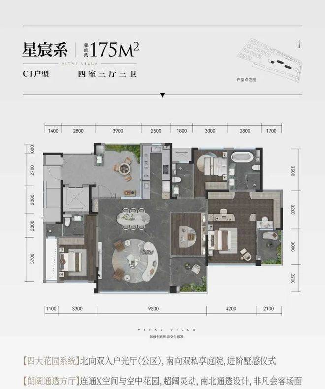 175㎡尊贵端厅户型-实际使用面积203㎡,“得房率116%”的极致空间。
