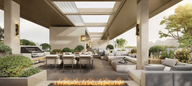 核心特色:采用层层退台的立体建筑形制,实现“一墅最多七花园”的环绕式景观。通过上叠的屋顶花园、中叠的退台露台、下叠的私家庭院与独立地下室,构建出从地面到空中的三维立体生活空间。