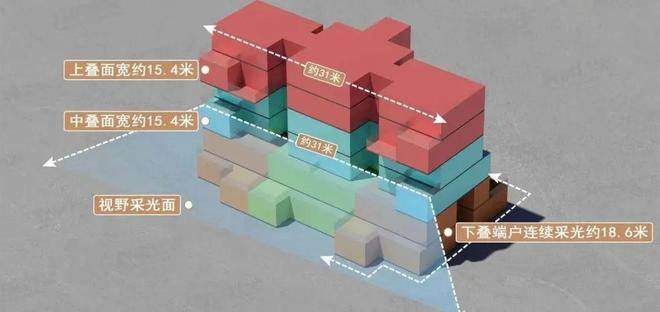中叠户型的亮点:15.4米的超级面宽,极大提升了中叠上叠的舒适度;2.中叠拥有7个花园空间,在入户、客厅、厨房、主卧等主要空间都有花园作为连接;空中庭院。