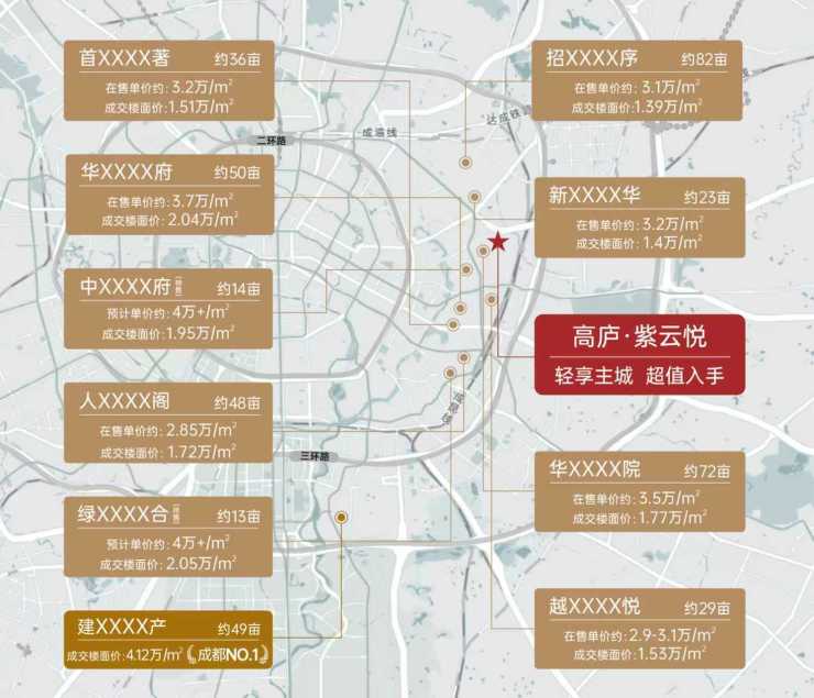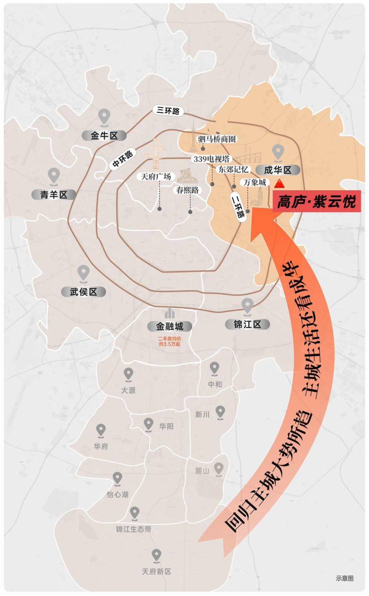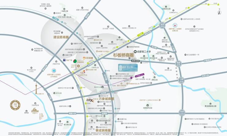 中环壕奢序列,高端配套轻享价:高庐・紫云悦,落位杉板桥东——这里既是成华3.0发展的主脉所在,更是与周边等超配板块同频共振,共享城市高阶资源。