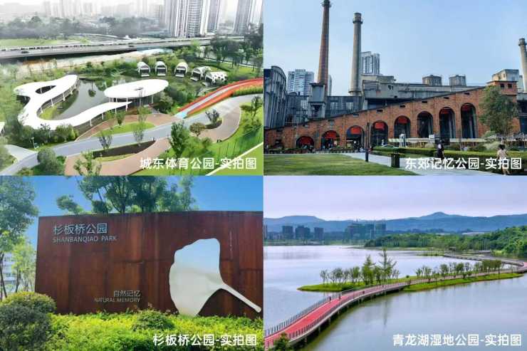 4大公园:城东体育公园、东郊记忆公园、杉板桥公园、青龙湖湿地公园,四大公园绿洲,拥揽自然。