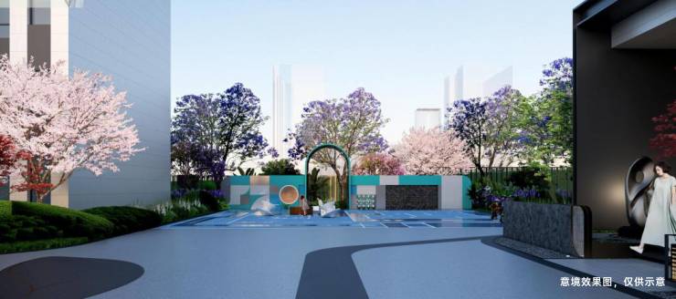 流光栖地,中庭景观轴:邻里庭院、云朵花园,清晨的太极、午后的茶叙、傍晚的亲子嬉戏,让久违的人情味流转。