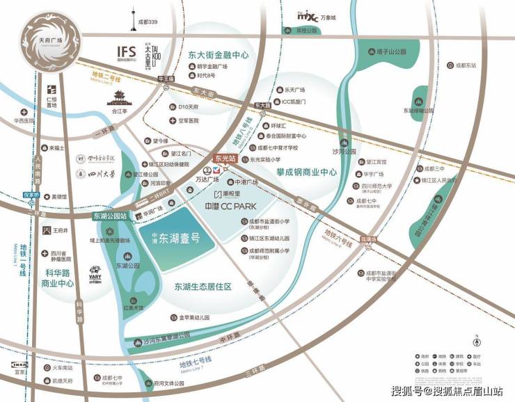 本案位于锦江区南二环,上承市井一环,下启国际城南,占据“中优”、“南拓”双重政策红利,是目前东湖板块最后一块纯住宅用地。项目拥享两轨三横四纵(两轨:6/8号线;三横:二环路、中环路、三环路;四纵:人民南路、科华路、锦华路、东大路)的立体交通路网,科华路、攀成钢、春熙路三大商圈环绕,中港∙龙湖锦江天街举步即达。周边名校聚集,医疗体系完善,醇熟生活近在咫尺。