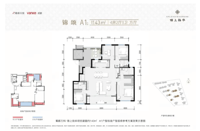 建面约143㎡四房户型 (锦颂A1/锦绣A2)