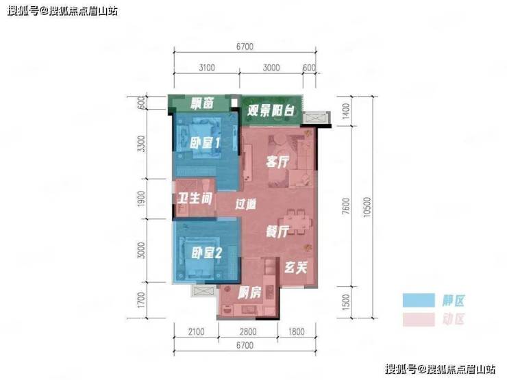 在这批次户型里,首推72㎡户型,最大的优势就是南朝向,采光通风都不错,布局也颇具心思。虽然生活阳台被割舍,不过观景阳台还在,可以给小户型增加空间感。两个卧室被客卫隔开,过道所需空间也被压缩到最低,减少了浪费。除了两个卧室距离稍近、私密性上的考量,其他方面基本上没有硬伤,甚至于在这个户型里还保留了玄关的设计,取舍得当,比较贴合刚需的实际需求。