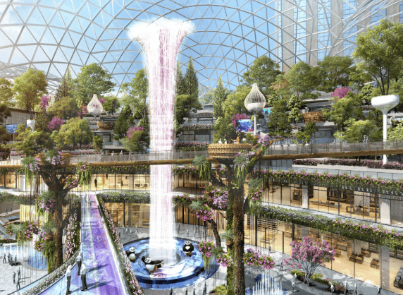 27万方地标商业综合体:项目自带商业体量惊人,规划对标新加坡星耀樟宜,打造亚洲最大的热带雨林主题购物公园(2027年开业),并配有166米甲级写字楼、精品酒店、红石艺术中心,潮玩美食街将于2026年底开业,未来自身就是千万级客流中心。