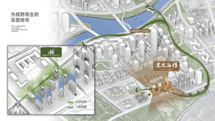 稀缺土地态度:以 41200 元 /㎡楼面价、106% 溢价率竞得金融城三期约 48.7 亩纯住宅用地,是区域内仅有的两宗建筑高度可达 100 米的住宅地块之一,从拿地阶段就彰显 “尊重土地、打造精品” 的定位。