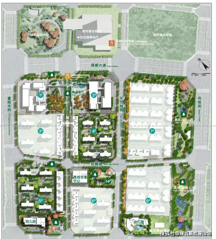 在项目的整体布局上,万科高线公园住宅外围基本被公园包围,社区则像“藏”在公园里;南侧的写字楼、高线客厅等商业配套迎接行政学院TOD地铁站的人流;沿楠木街分布的商业街和中心位置的高线邻里中心、LINK剧场则将合力营造有“烟火气”的社区,并解决业主的日常商业购物需求。