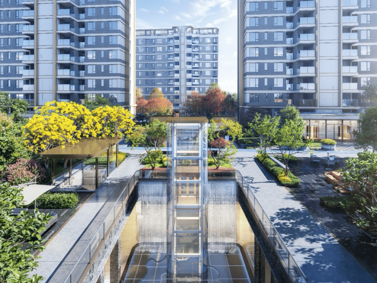 社区景观灵感来源于新加坡城市度假森系园林,借鉴华尔道夫酒店的归家礼序及酒店式配套,并融入千年蜀锦文脉,打造全龄化精彩社交园林。以“三大空间·四感疗愈园林·十大精彩场景”景观体系,呈阅锦绣云川生活精彩。