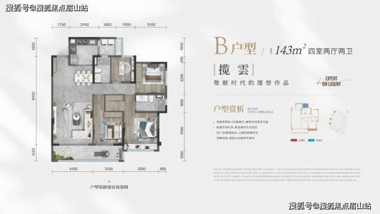 -【户型鉴赏】锦江143㎡王者四房(四室两厅两卫(横厅)豪奢采光面/7M巨幕横厅/双阳台/主卧套房