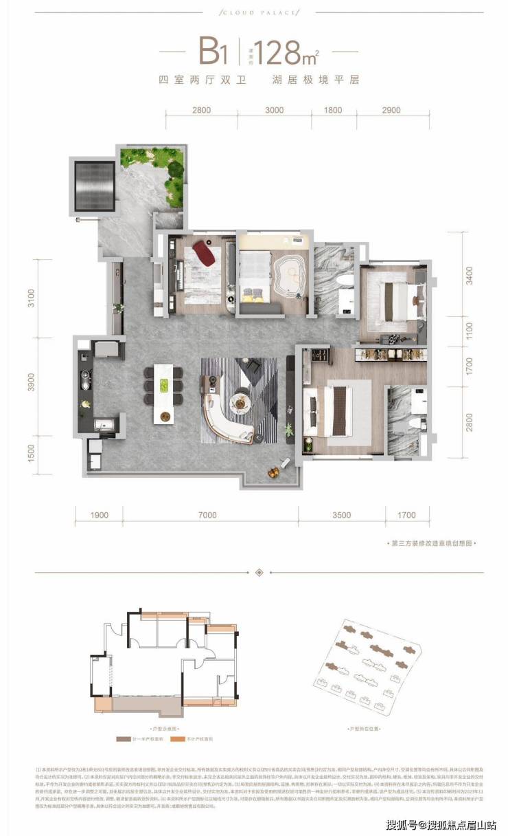 建面约128㎡ 【四室两厅双卫】 2T2户纯板式 湖居极境平层