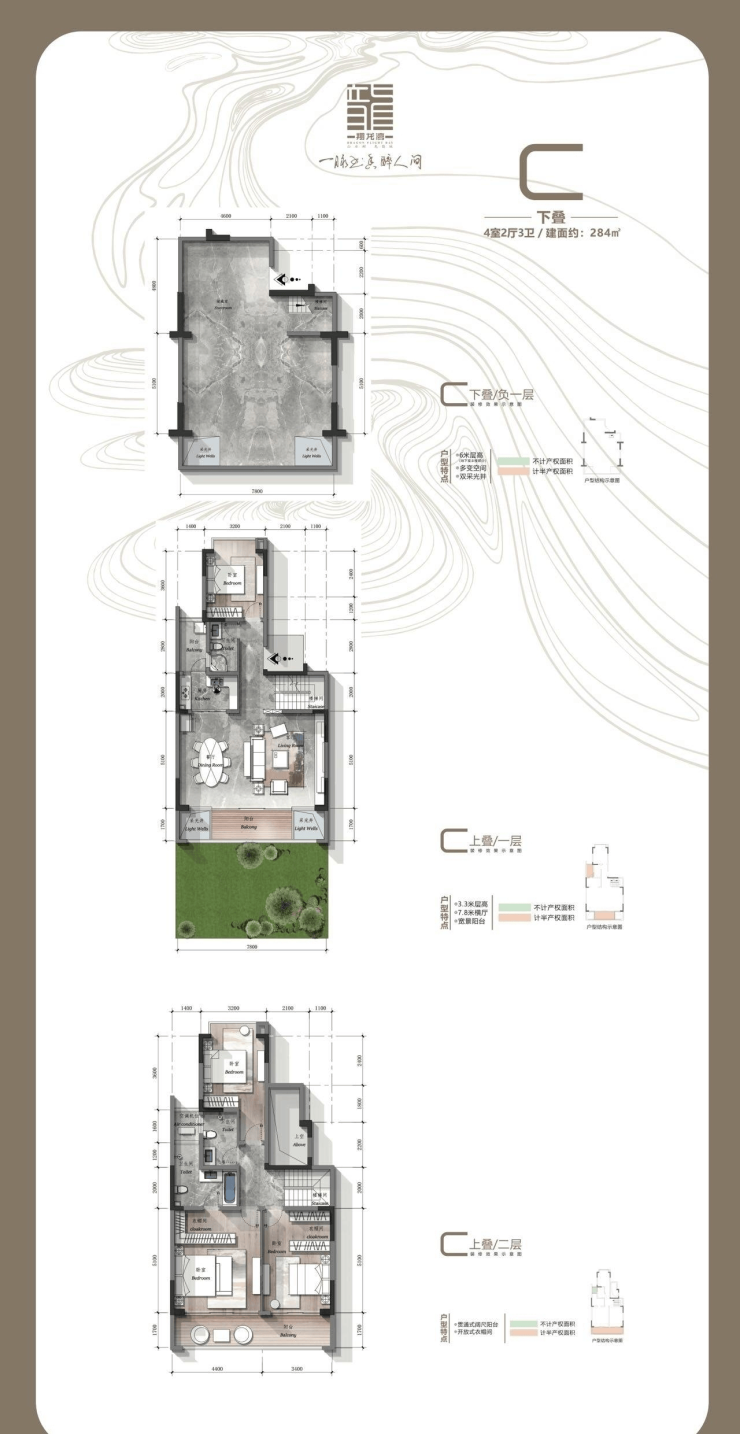 【基本信息】 总占地面积:42亩,容积率:1.5,绿化率:35%,总户数:184,物业费:4.9元/㎡,楼层总高:6+1,3,交付标准: 清水交付,交房时间: 预计2023年12月31日,产品面积:A户型 建面约235㎡~271㎡;B户型 建面约237㎡~284㎡;C户型 建面约209㎡~269㎡;E户型 建面约410㎡~470㎡