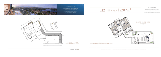 此系列是项目的巅峰藏品,旨在提供别墅级的空间体验。约224㎡的合院户型创新采用双院落设计,保障多代家庭的私密与共享。约287㎡的平墅则达到空间与视野的顶峰,拥有2梯2户、客厅+边厅的双厅布局以及约24米长的全景阳台,足以从容规划双主卧套房、中西双厨及多功能厅,是为城市塔尖人物定制的、可传承的河畔传世大宅。