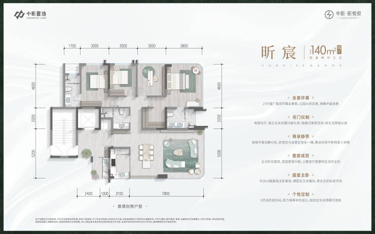 【超广角全景舱】建面约140㎡四房三卫 超广角全景舱,对标千万级豪宅