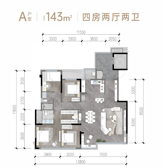 四房高阶配置:128㎡比肩143㎡,打破常规尺度,满足高定生活需求