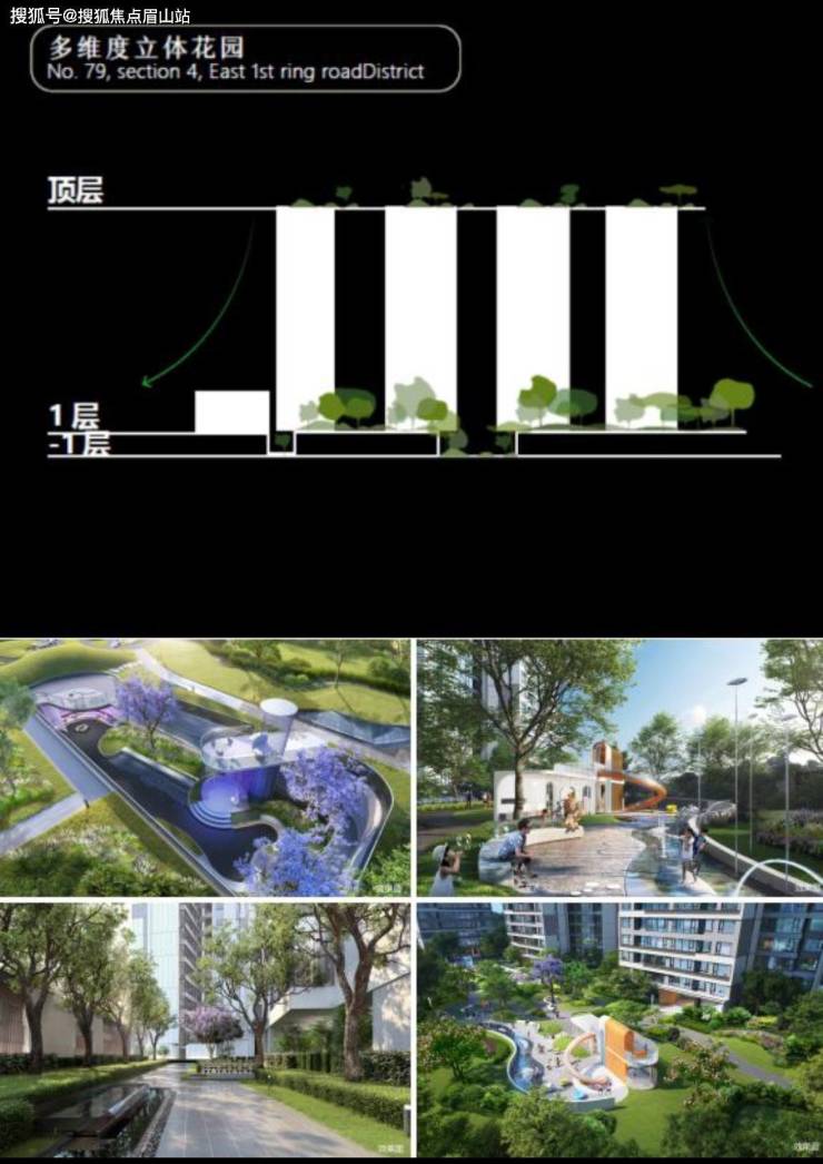 ⭕️空间设计:四维立体社区居住新模式汲取新加坡垂直都市为灵感,打造下沉、地面、居家到顶层花园的四维立体,设计创造前沿的生活体验