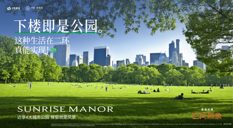 第一重中庭与公园双面览景——三栋建筑栋栋对中庭,皆实现双观景面,公园上的观景台