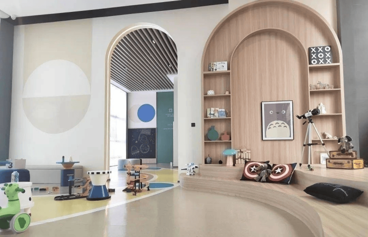 此外,天投公园翠屿还打造出首层架空景观庭院,其中运动、会客、童趣三大主题场景即位于楼栋首层的架空层。这种做法目的在于打破建筑边界,增加首层空间的利用率,扩大业主的活动范围,让居住场景得以延伸,最终实现内外空间有机互融。而这样的架空层设计,在产品定位“刚需+刚改”的住宅项目中,是较为罕见的。