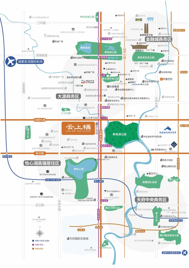 项目位于剑南大道南段,地处双流区和天府新区交界处,紧邻成熟的南湖板块和炙手可热的怡心湖板块。这个区位让它既能享受当下的成熟,又能承接未来的发展红利。