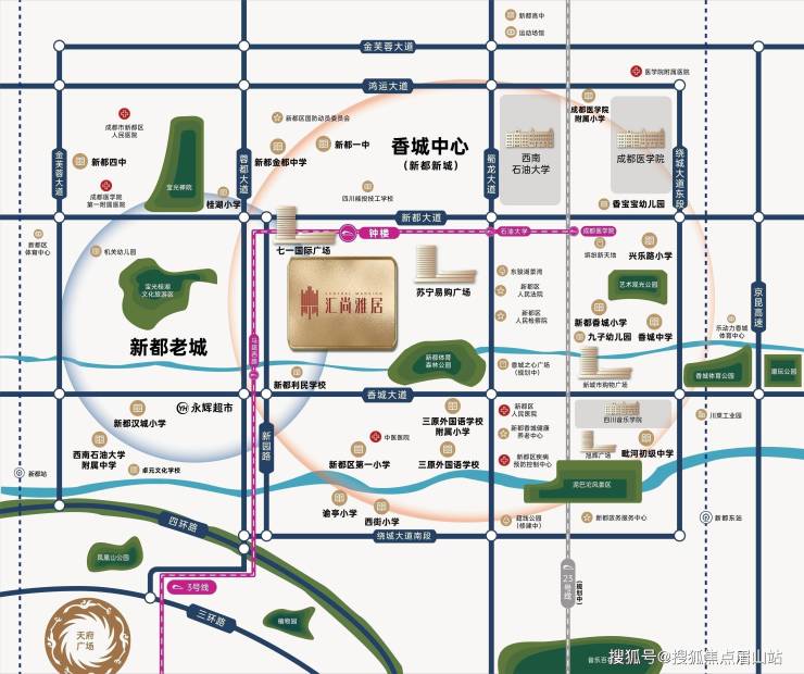 【教育】:香宝宝幼儿园、医学院附属小学、新都高中(拟建)、石油大学、医学院、音乐学院