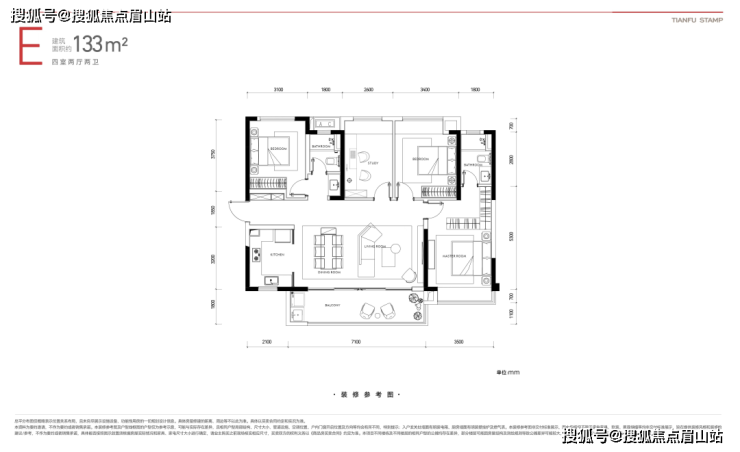 其它户型方面,因为本批次不推,且很多户型大同小异,所以我就放一个133平的户型图,大家自行了解,这3个户型也算是天府合印最具代表性的户型了。
