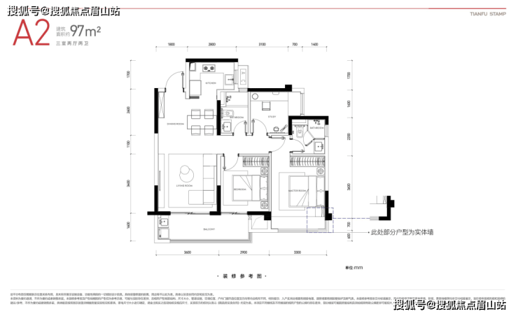 天府合印一批次只会推出9栋共计108套房源,因此它这次也只有两个户型可供选择,分别是97平三房两厅双卫和113平米三房两厅双卫。