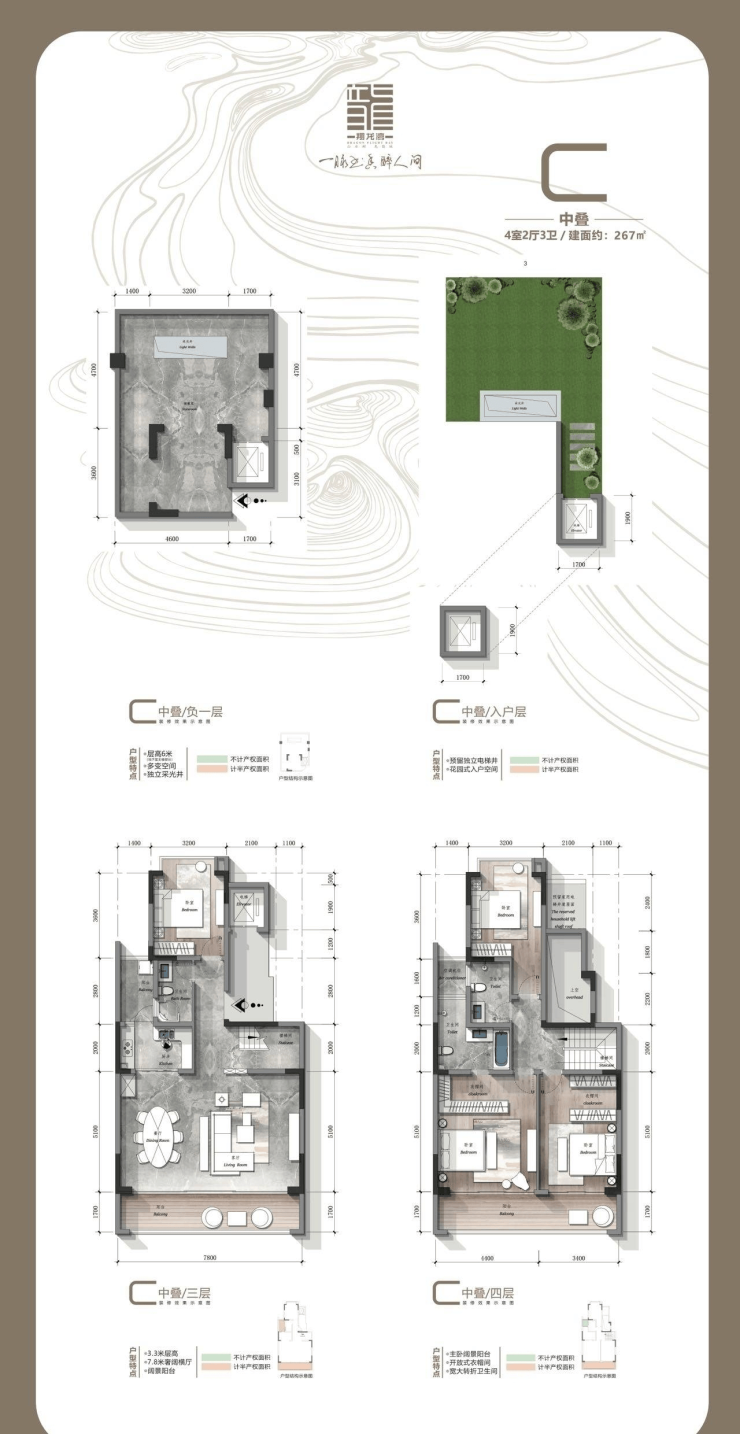 【基本信息】 总占地面积:42亩,容积率:1.5,绿化率:35%,总户数:184,物业费:4.9元/㎡,楼层总高:6+1,3,交付标准: 清水交付,交房时间: 预计2023年12月31日,产品面积:A户型 建面约235㎡~271㎡;B户型 建面约237㎡~284㎡;C户型 建面约209㎡~269㎡;E户型 建面约410㎡~470㎡