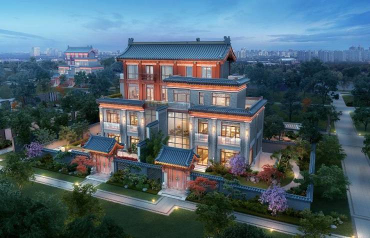 叠院:九栋京派官式风格臻稀叠院,一面红墙、一抹飞檐、一排瓦当尽显千年文化符号。