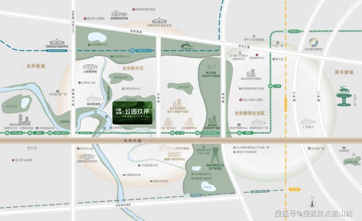 *沿光华大道贵脉,形成城西黄金主轴发展,在主轴两侧强劲吸附重要资源配套。