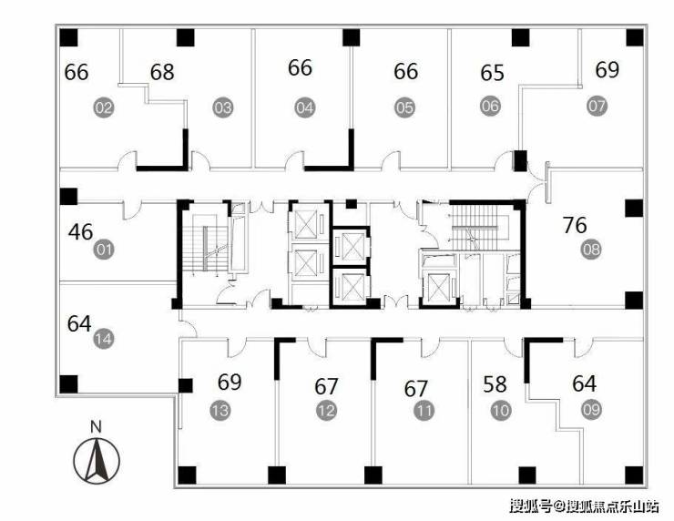 居住便捷度高、私密性好、公摊面积适中以及通风采光俱佳