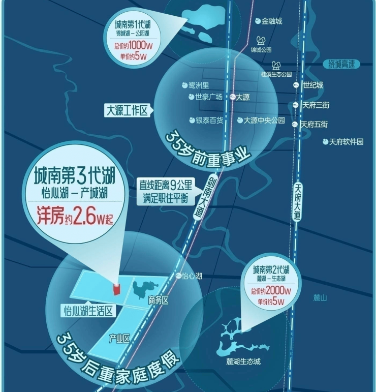 在城南人人都想拥有一线湖居生活,锦城湖一线湖居二手房已达 1000w+,麓湖一线湖居 5w+,怡心湖第三代湖居生活,无需4w+,无压力置换湖居度假生活