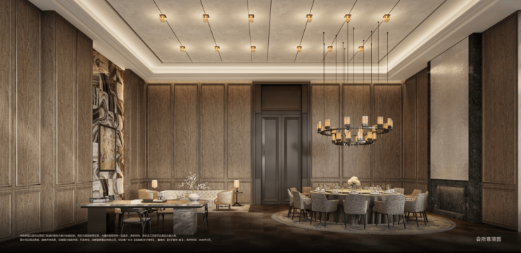 约2700㎡经典重奢会所:复刻纽约华尔道夫酒店顶奢私享领域;规划米其林规制私宴厅、大堂吧、健身房等高定场域。