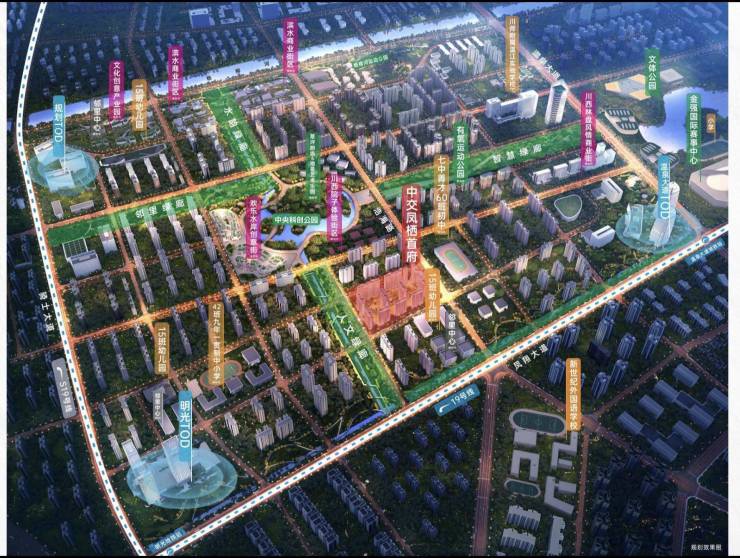 四、生态:在生态方面,项目所处板块公园林立,依托2大城市级公园、5个社区级绿廊公园、15个组团级口袋公园,约5万㎡凤栖绿廊公园,尽享生态绿意;