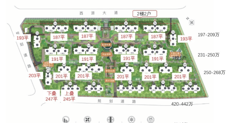 187㎡:单价8000-8600元/㎡,总价150-160万