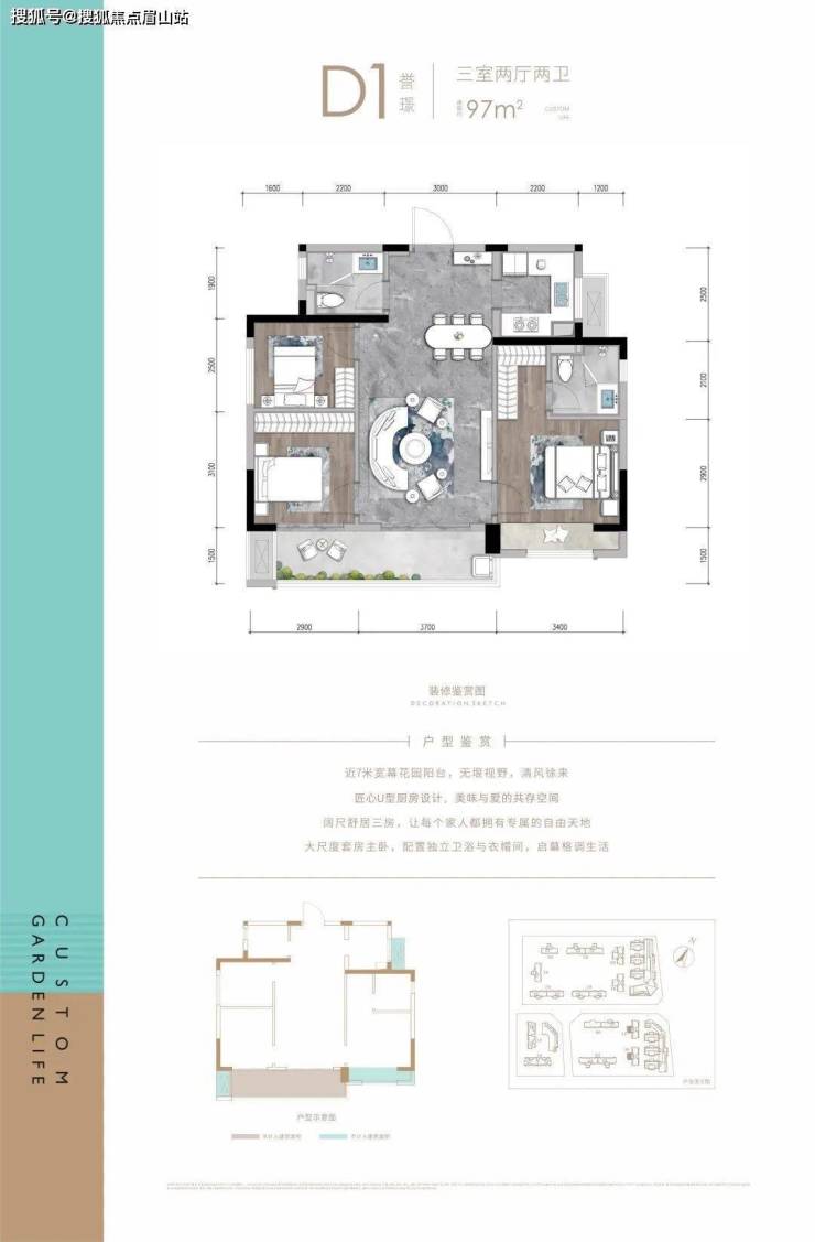 建面约97m²的套三户型。注意:这个户型本次开盘还未推出。