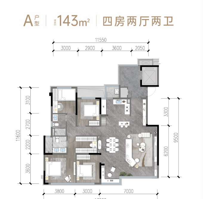 主力户型:128-143㎡(均配约12㎡入户花园)