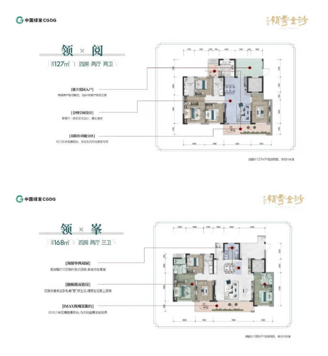 04 主力户型解析 全系127-168㎡精装华宅,以南北通透、阔尺阳台与高得房率,满足多代同堂家庭对舒适、功能与景观的全维追求