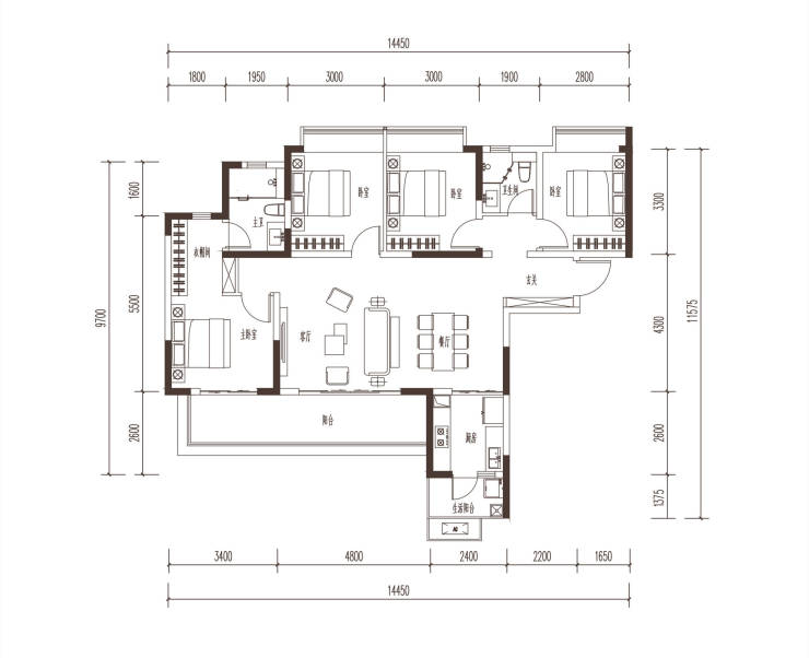 C1户型 建面约138.48㎡ 四室两厅两卫