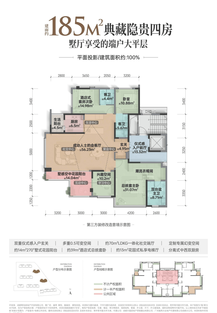 2、185㎡---比肩墅级空间享受,定制臻席的墅级平层
